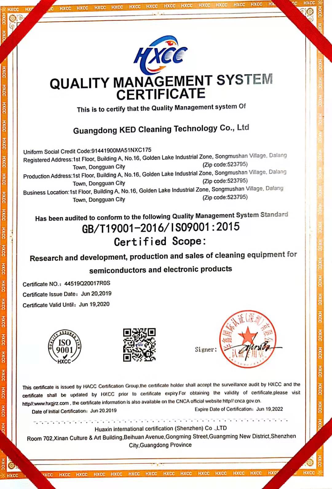 质量管理体系认证证书